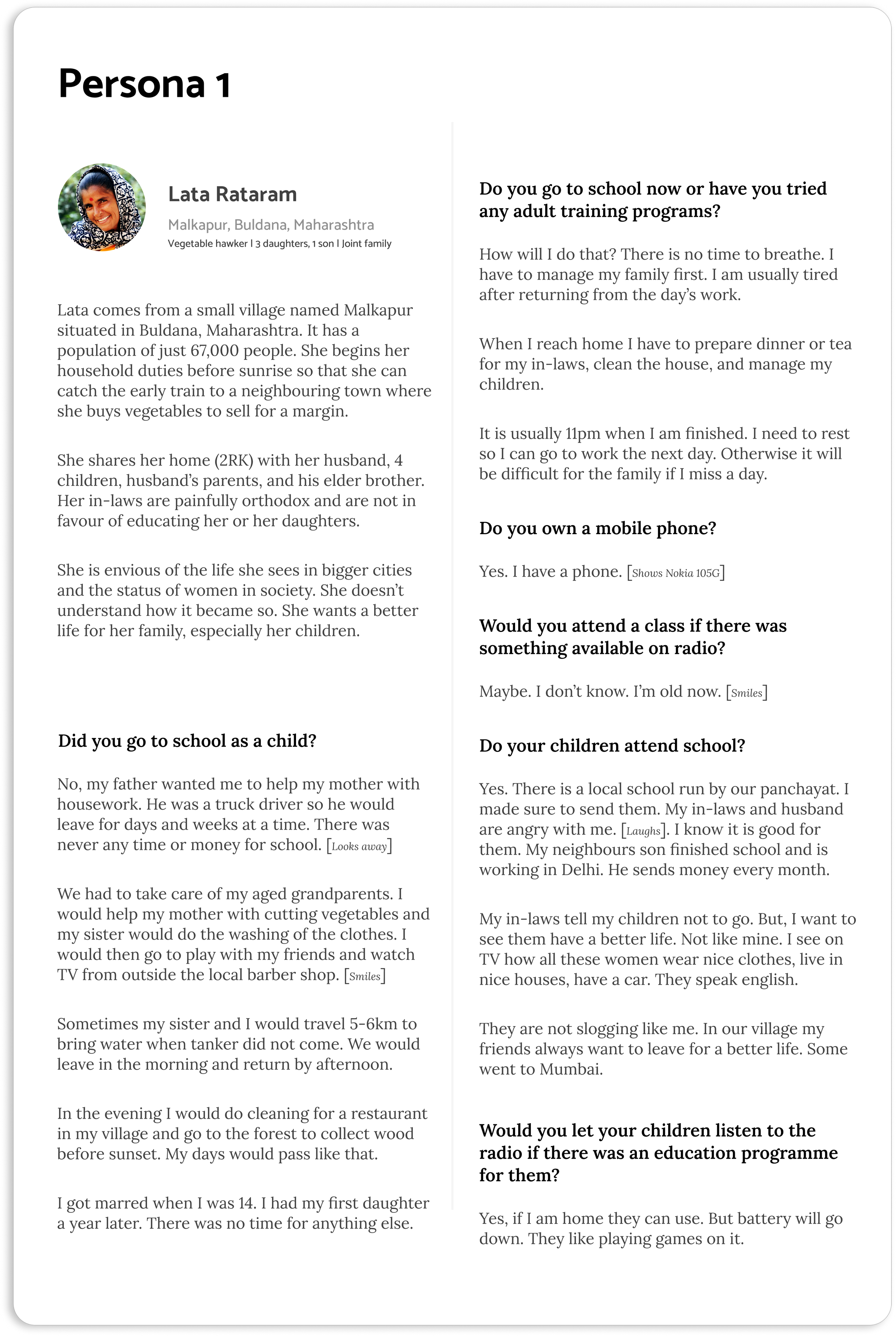 A curious dive into designing for social good in an attempt to solve one of India’s wicked problems - female literacy, both children and adults. This was an optional coursework assignment that I worked on and felt strongly about. I thought it would be a good opportunity to apply a design thinking approach to solving something as critical and complex as literacy in a developing country.